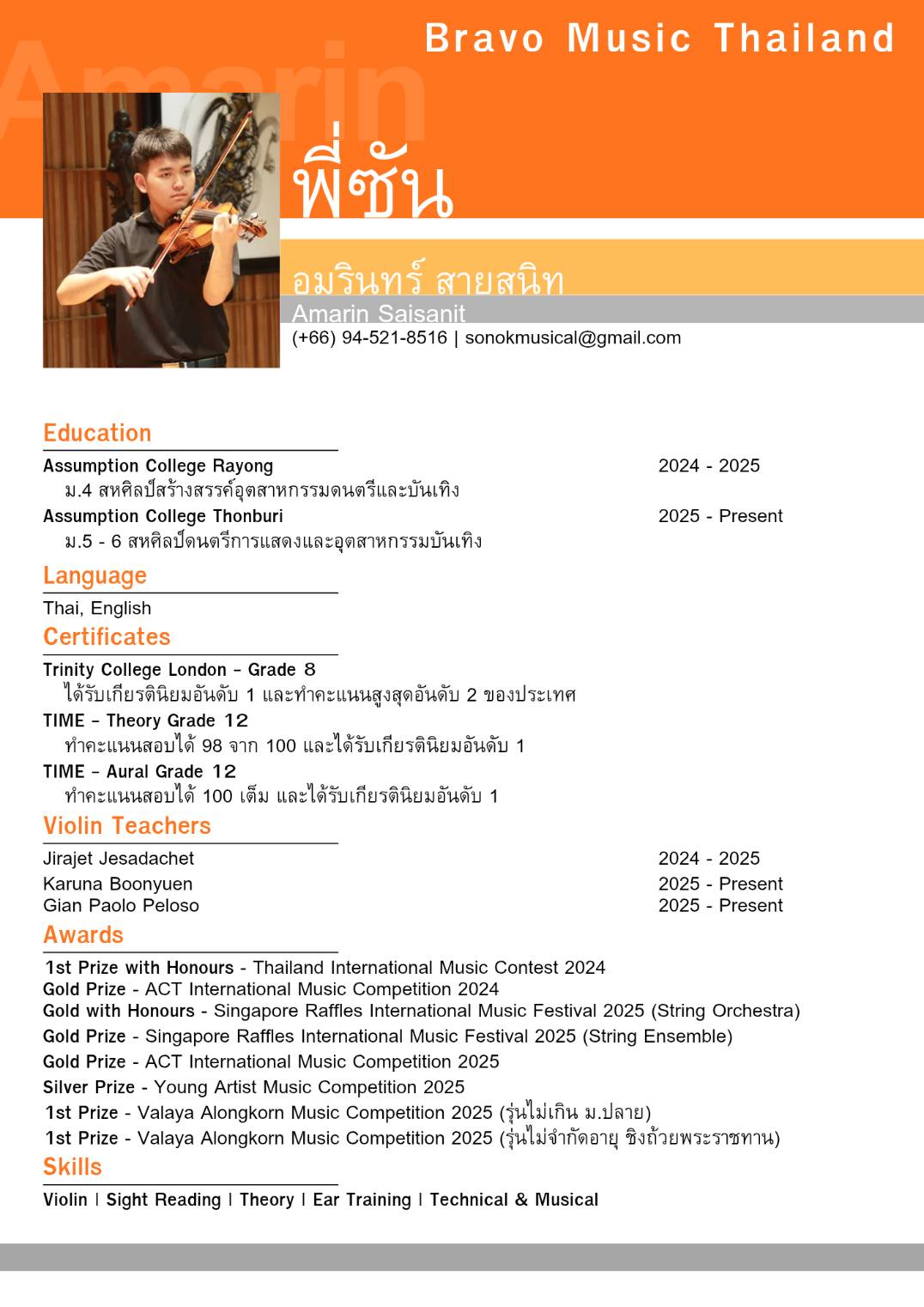 ตำแหน่งงานปัจจุบัน: สมาชิกวงดุริยางค์ไทยแลนด์ฟิลฮาร์โมนิค